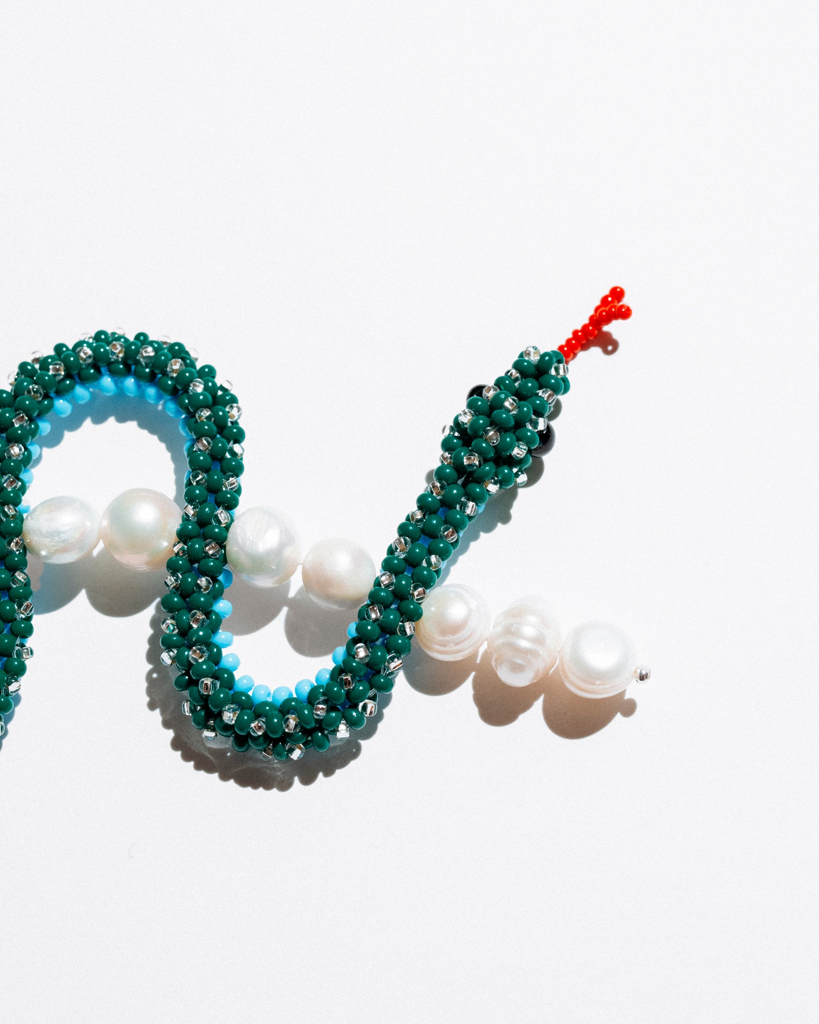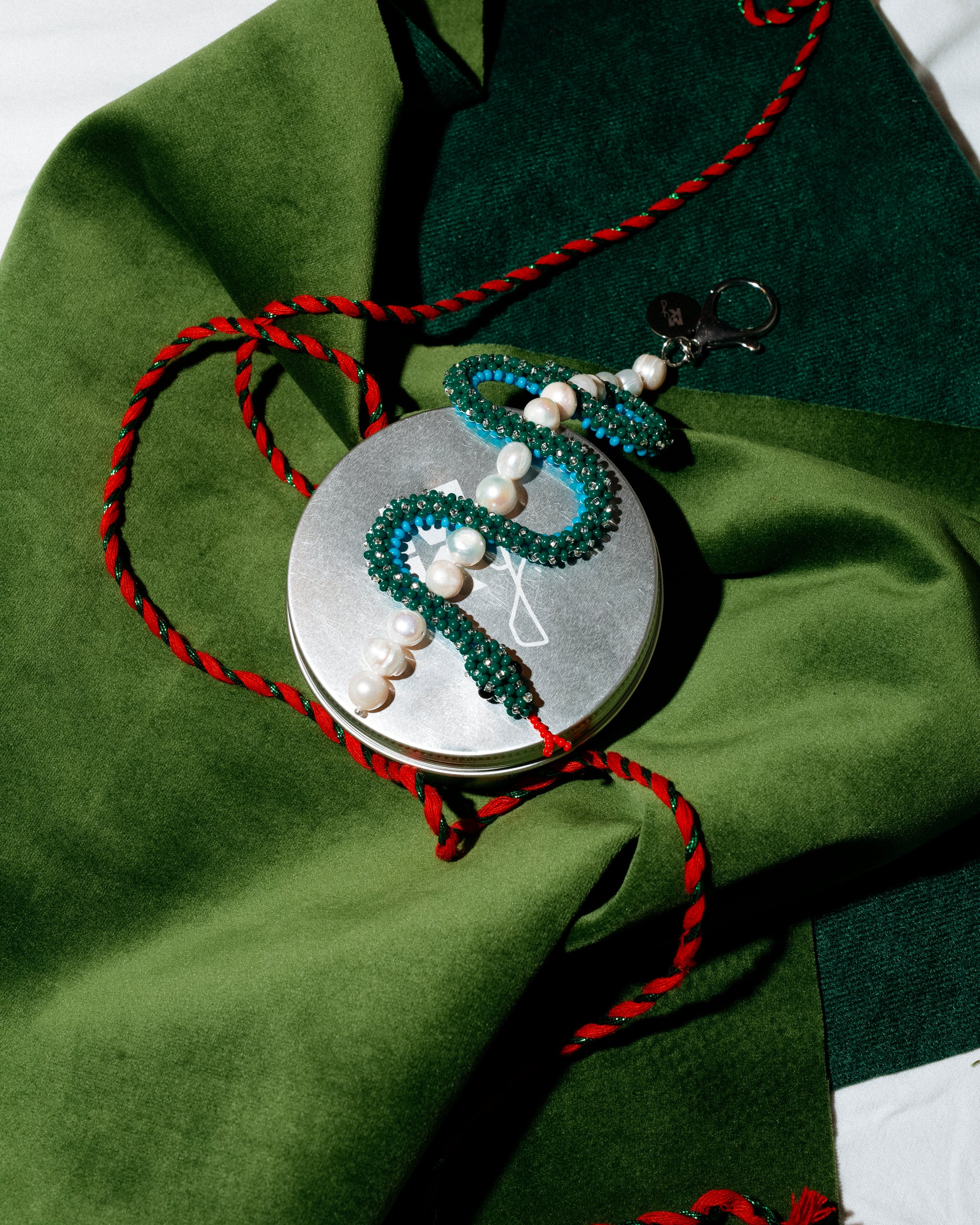 Add a bold touch to your everyday essentials with the 25 Snake Key-Ring. This handcrafted accessory features a striking beaded snake design, luminous pearls, and a durable stainless steel clasp for secure attachment. Perfect for keys, bags, or as a stylish accent, this unique key-ring combines artistry and practicality, making it a standout piece for yourself or as a thoughtful gift.