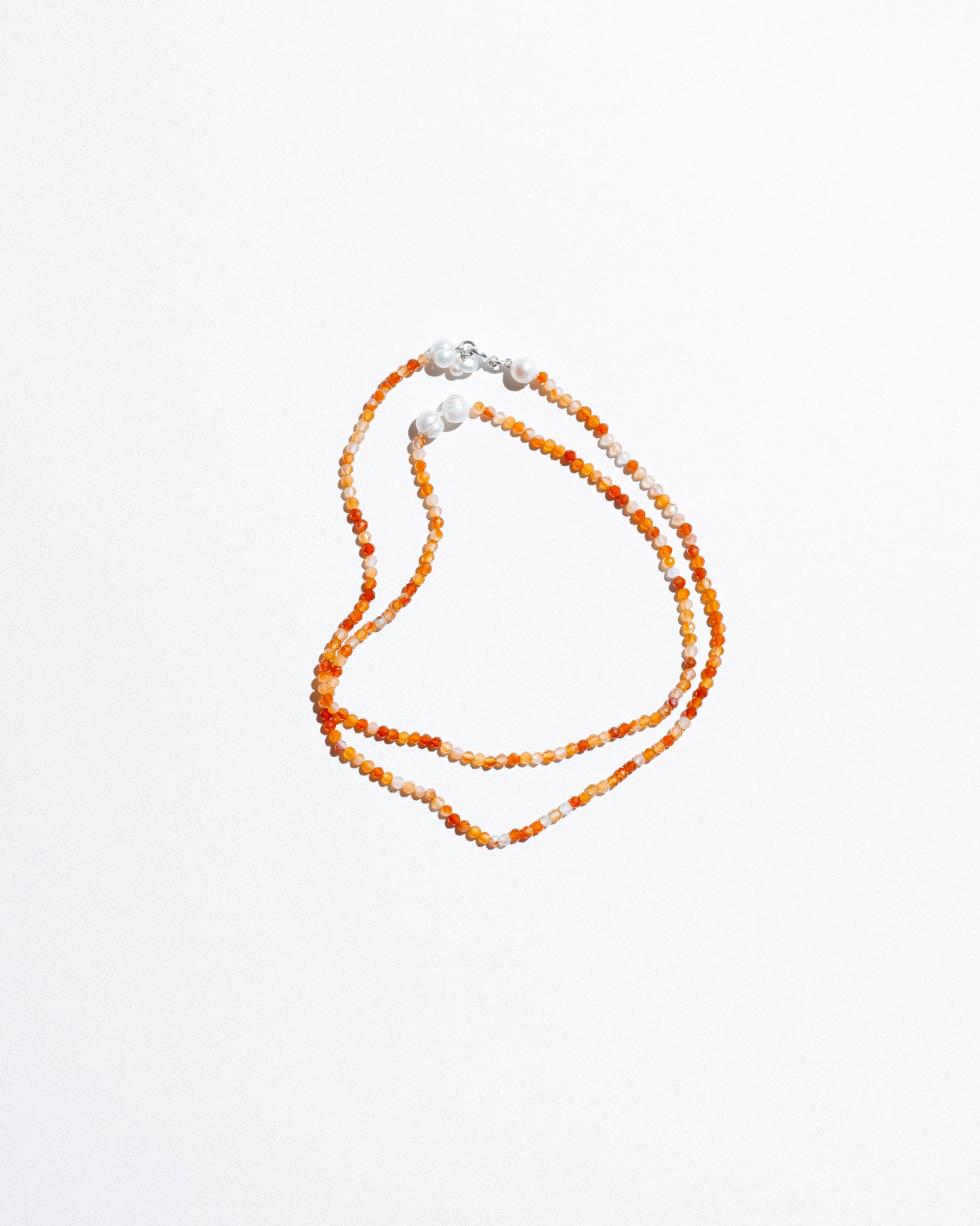 A carnelian necklace from the Chakras collection. It corresponds to the second chakra, Svadhisthana (sacral). This chakra is responsible for emotions, sexuality, creativity, passion, and pleasure. Orange carnelian symbolizes the second chakra and promotes its harmonization.