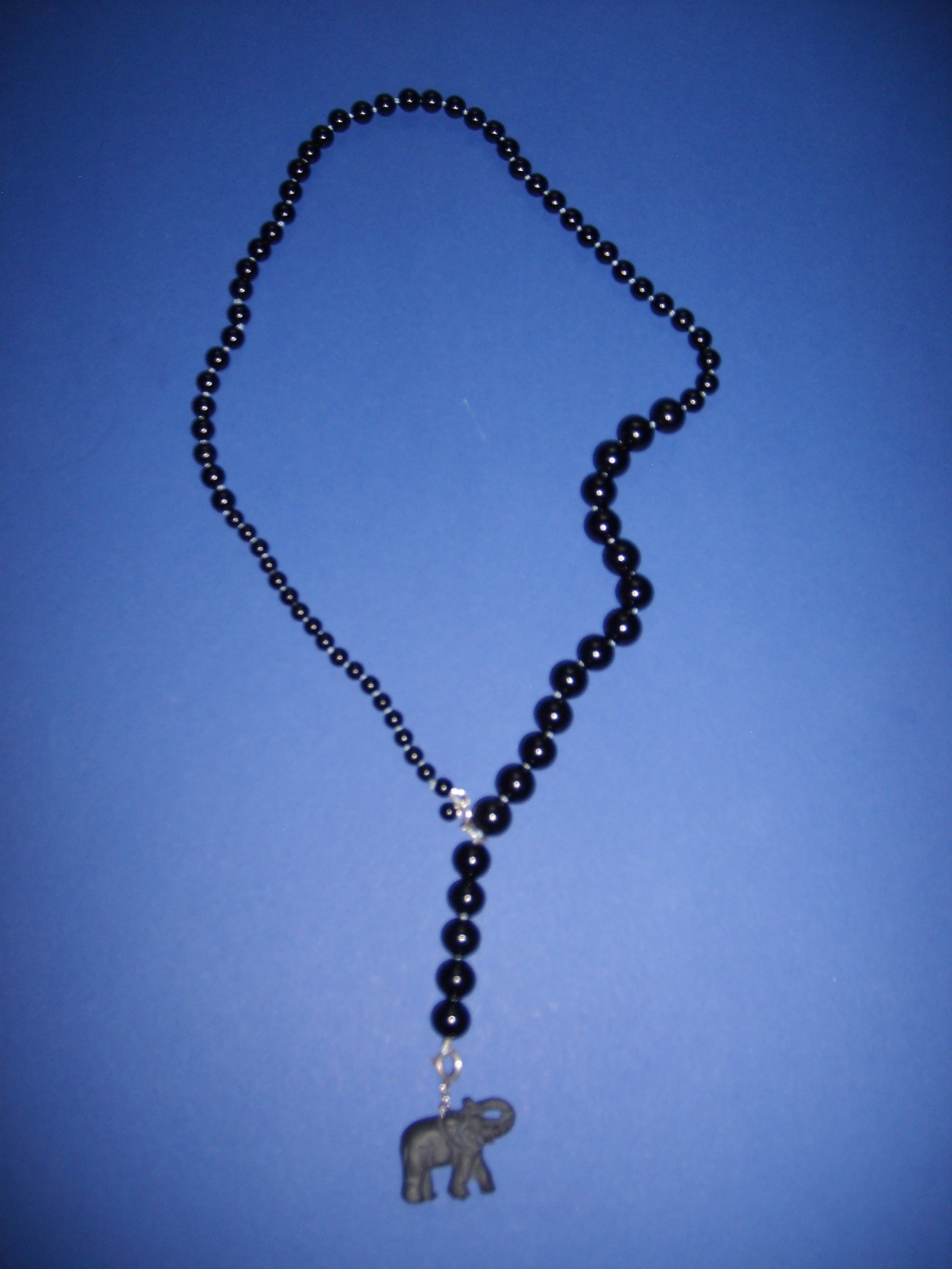 Black onyx necklace with an elephant