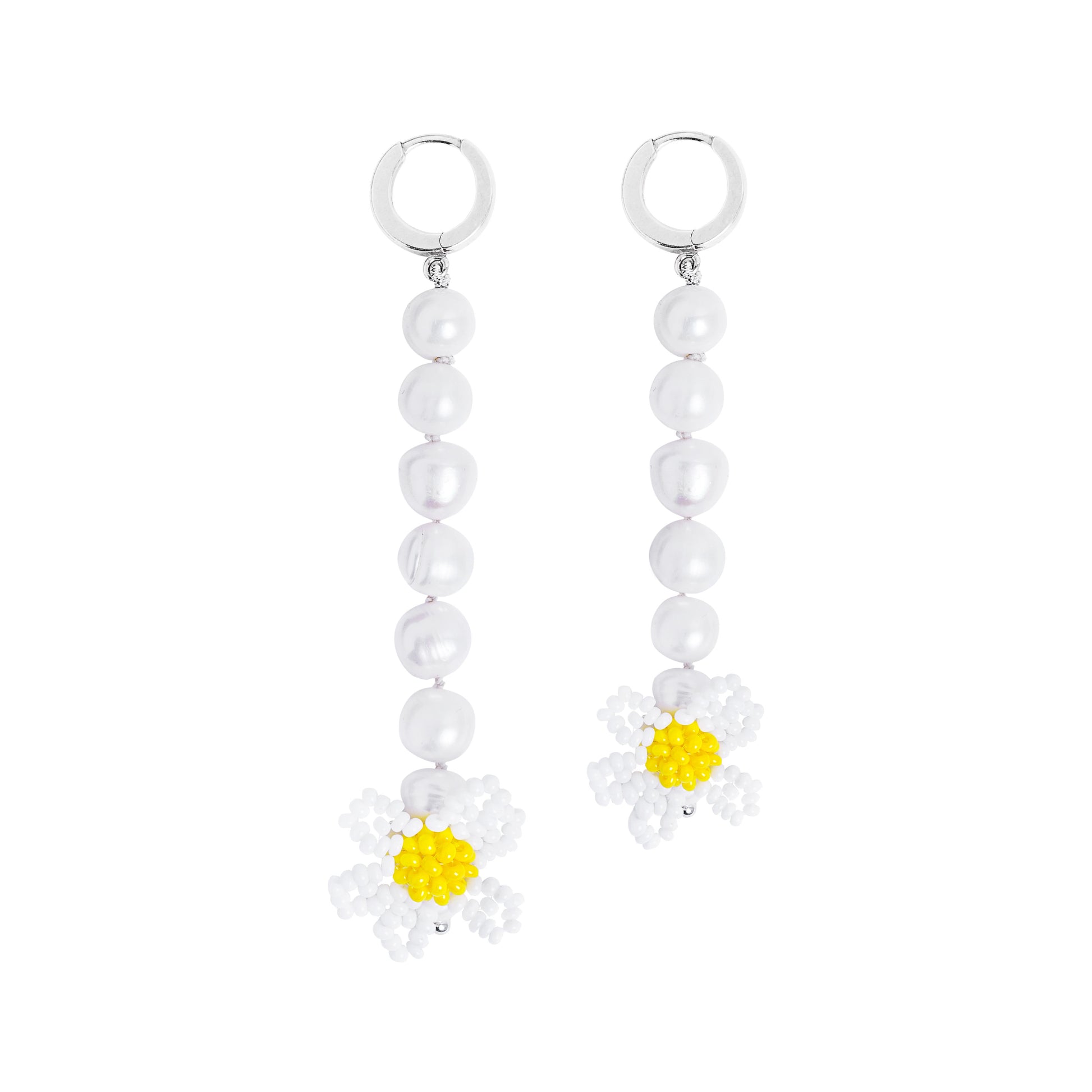 Add a touch of delicate beauty to your ensemble with our handmade earrings featuring beaded Chamomile and lustrous freshwater pearls. The silver fittings add a touch of elegance and sophistication, making these earrings perfect for any occasion. Whether you're dressing up or dressing down, these earrings are a beautiful addition to your jewelry collection.