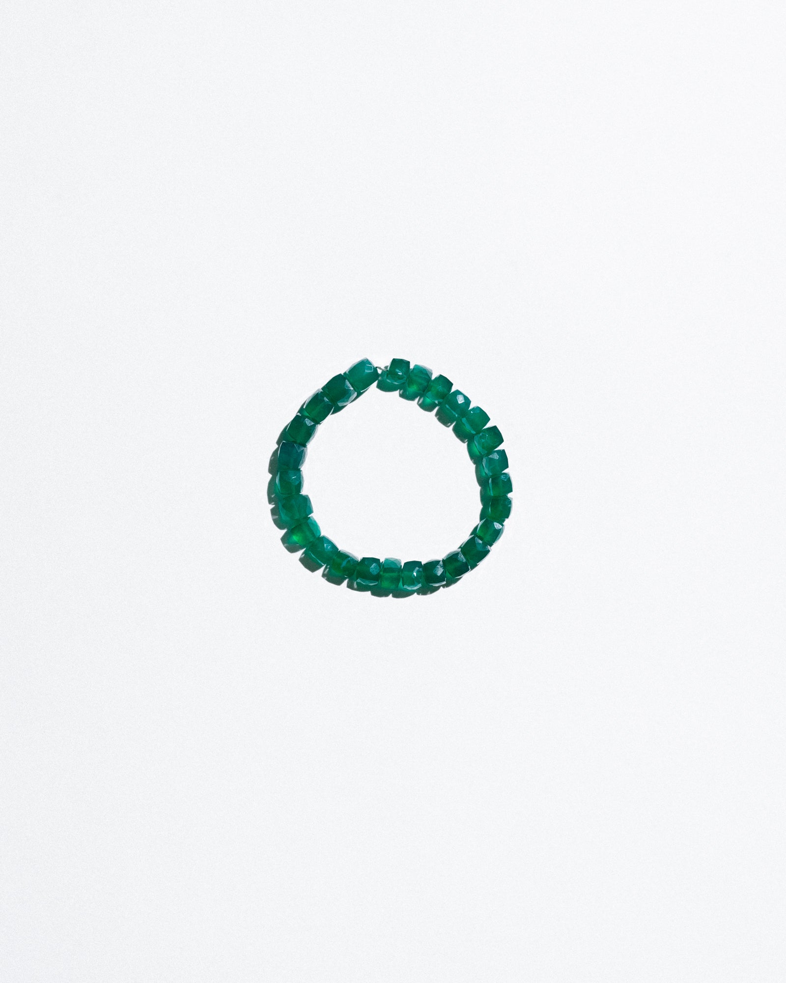 An emerald agate bracelet on an elastic thread. The rich and unique color of the stones makes emerald agate jewelry truly luxurious.