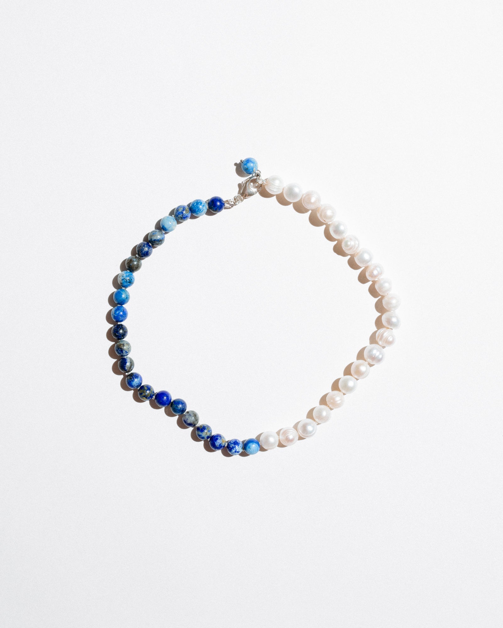 A strand of deep-blue lapis lazuli flows into creamy freshwater pearls, joined bead-by-bead with secure hand-tied knots for superior drape and durability. The cool-toned mix feels crisp and modern while echoing classic maritime colours - ideal for layering or wearing solo as your daily pop of blue.