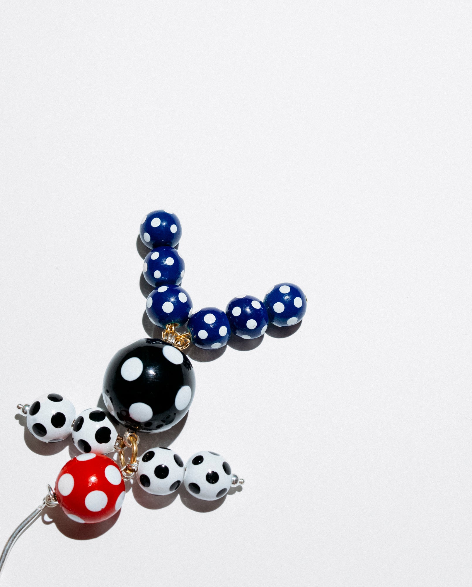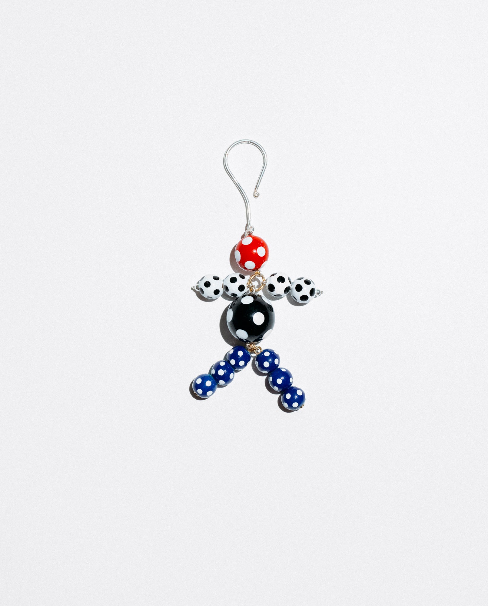 The Kusama Key-Ring is a whimsical and playful accessory, crafted from hand-painted wooden beads arranged in the shape of a charming doll. With its bold polka dot pattern and vibrant colors, this key ring is perfect for adding a touch of fun to your keys or bag. A lightweight yet durable piece, it’s ideal for those who love unique, eye-catching designs.