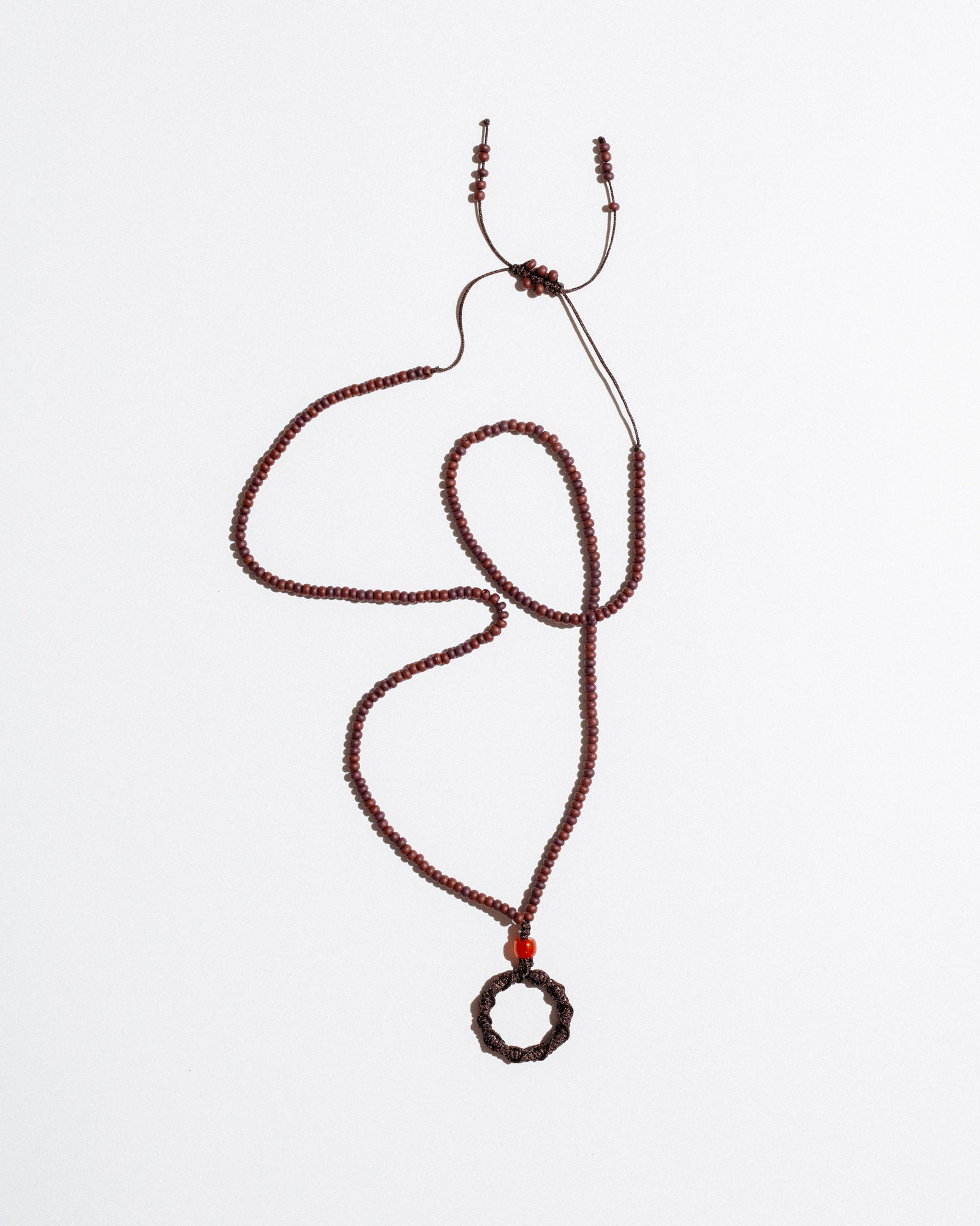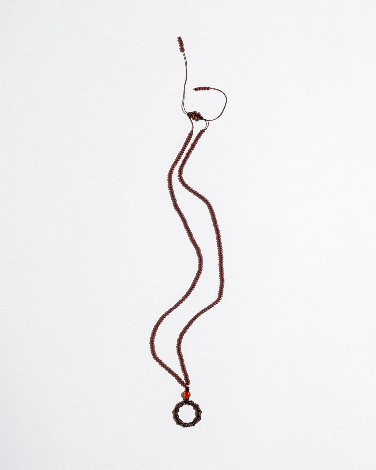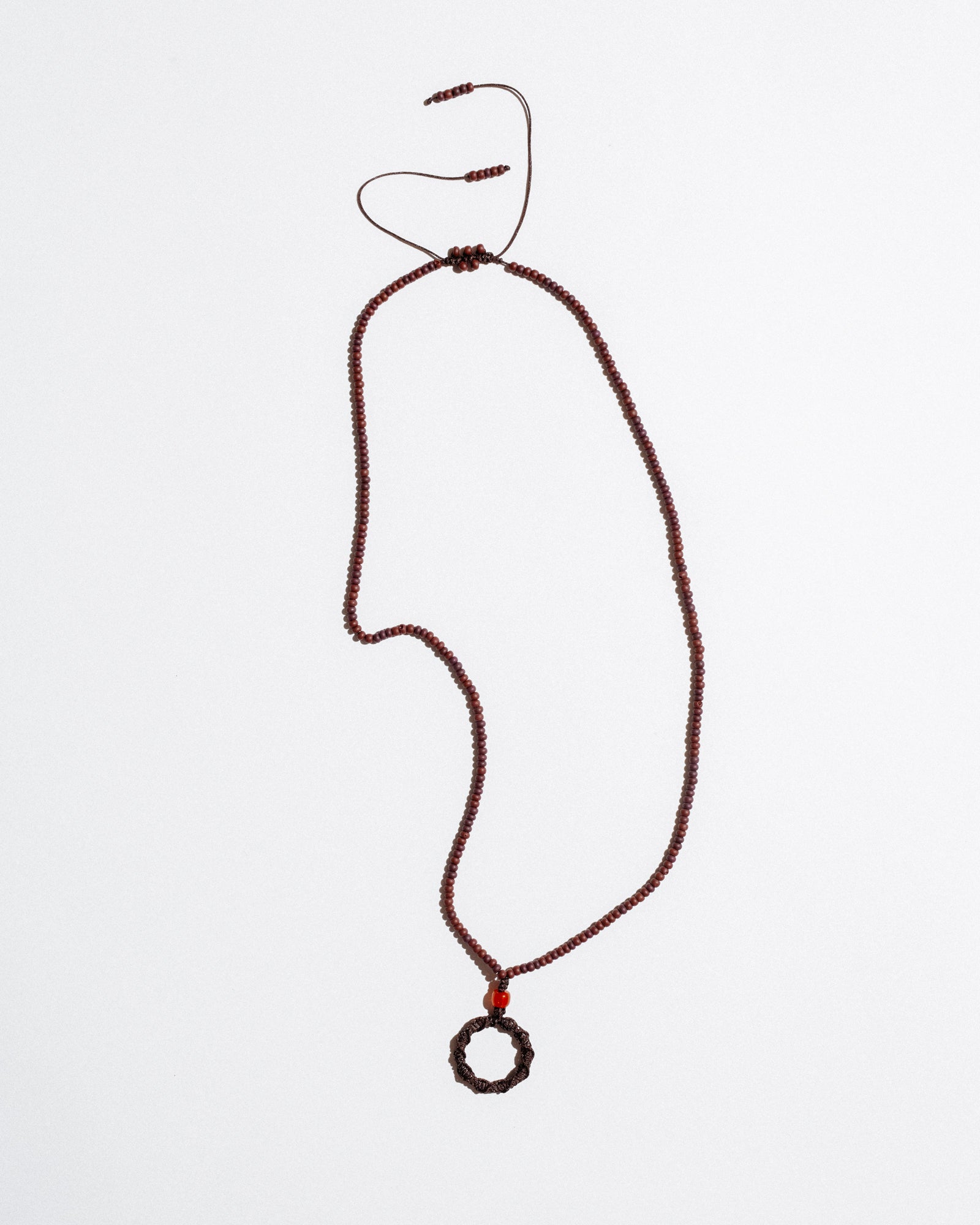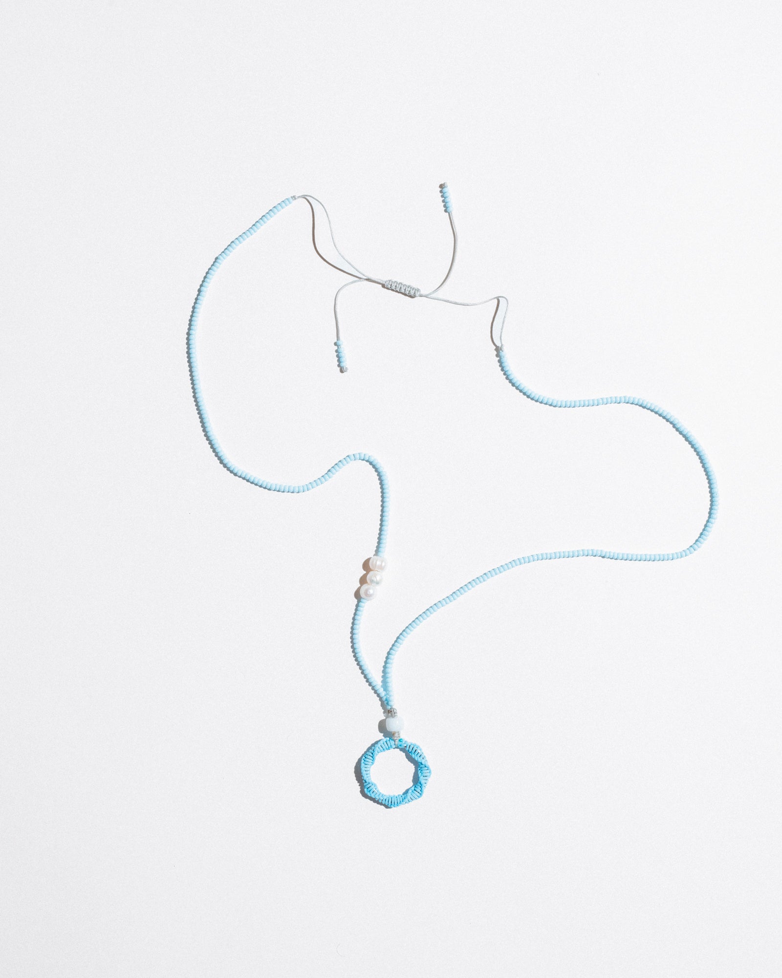 Mono Circle Brillenkette is a bold, functional accessory designed to hold your glasses with style. Featuring a hand-beaded cord and an integrated steel ring wrapped in nylon, it also works as a base for charms or keys — or can be worn solo as a sculptural necklace. Its adjustable length ensures comfort and versatility.