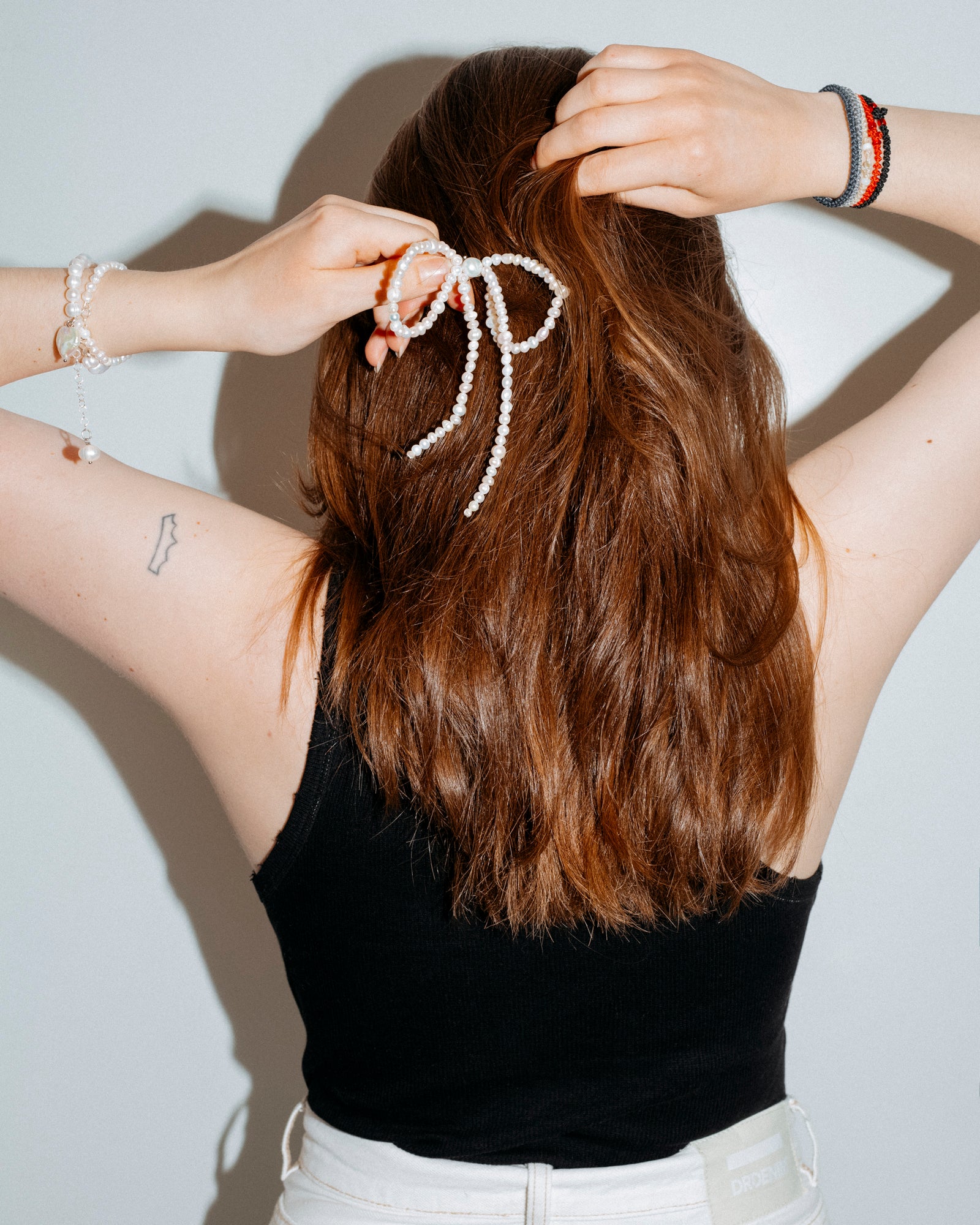 A delicate and timeless hairpin, the Pearl Bowtie is designed with luminous pearls that form a graceful bow. This elegant accessory adds a refined, feminine touch to your hairstyle, perfect for both everyday wear and special occasions.