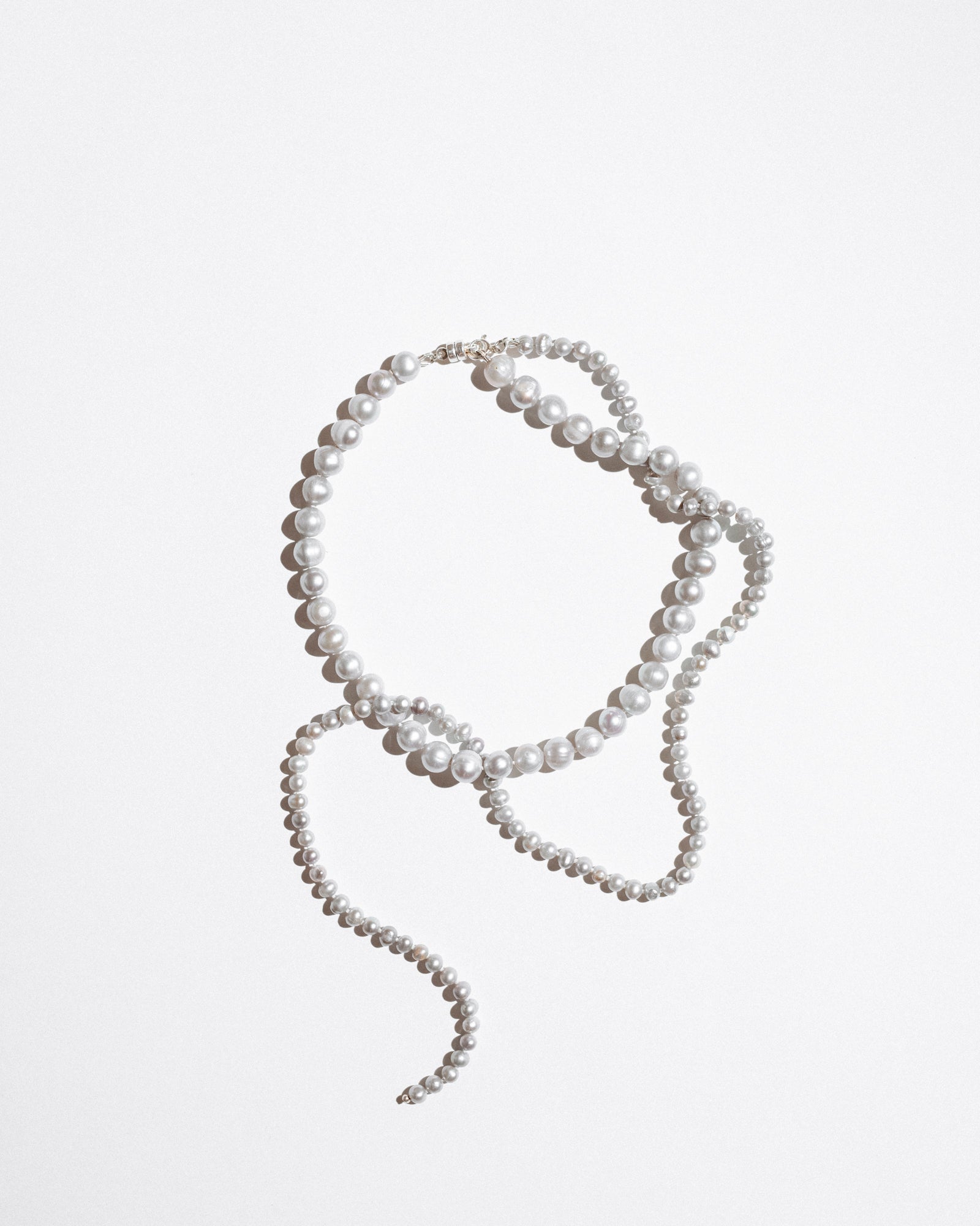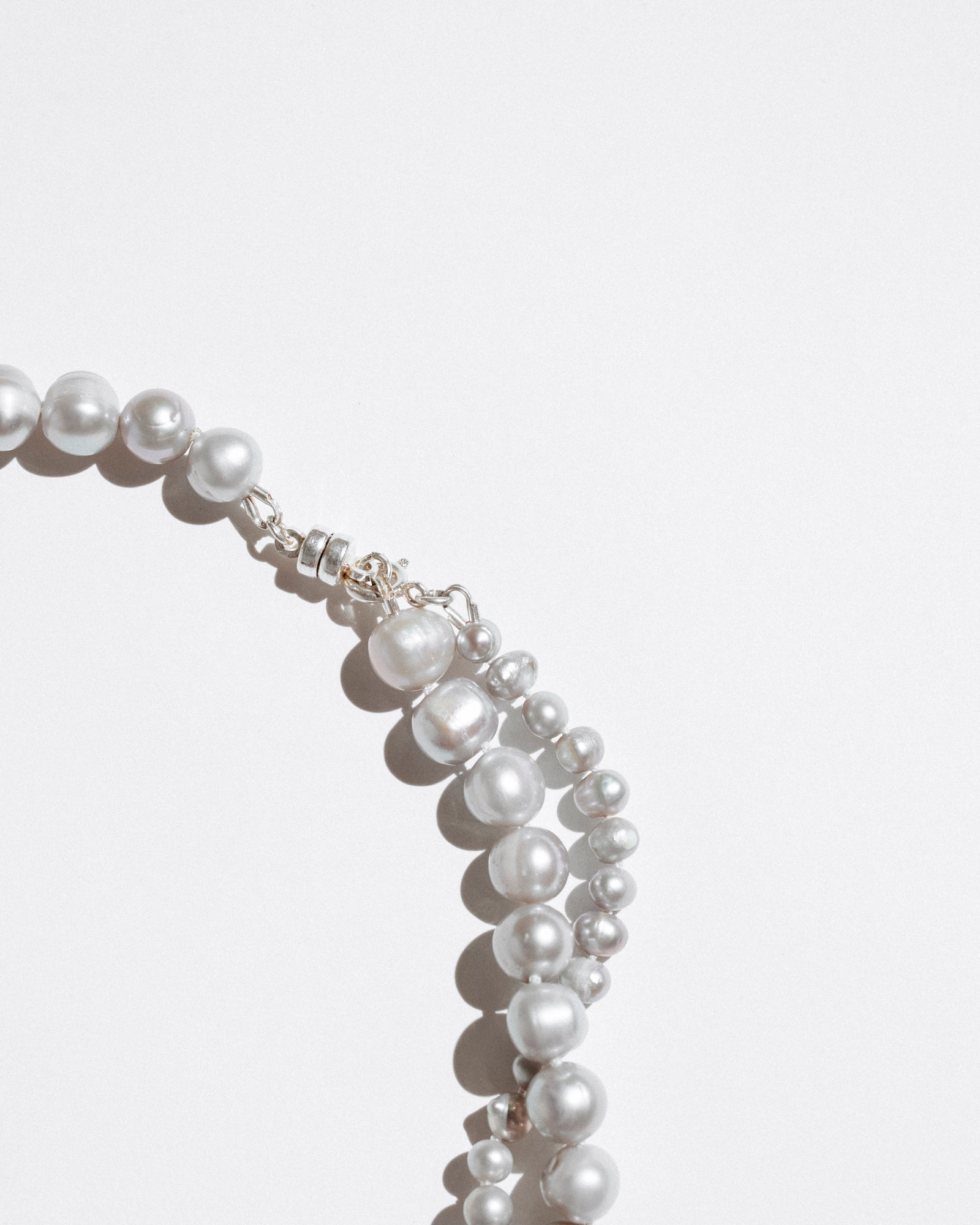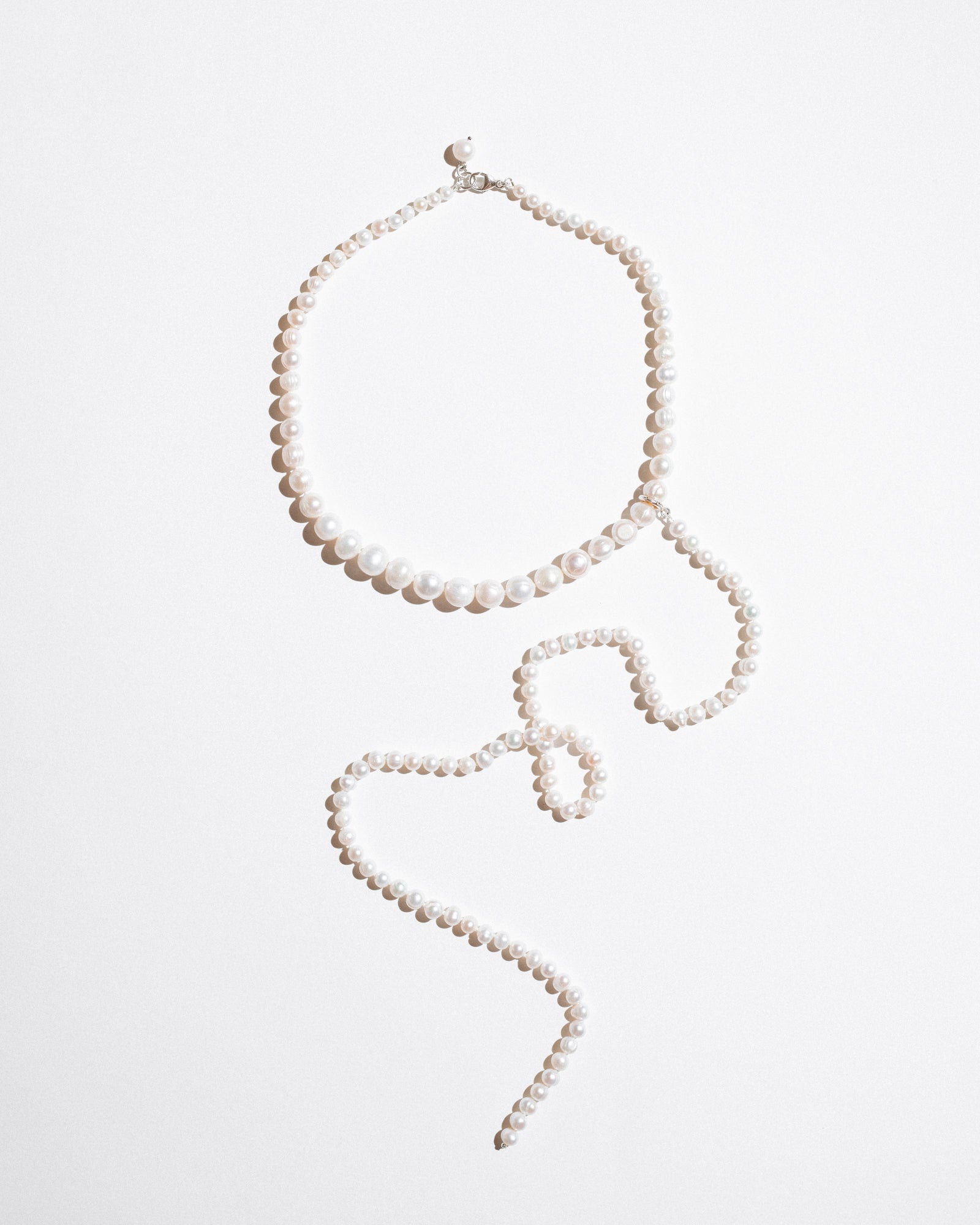 The Pearl Tail is a versatile jewelry extension designed to enhance your favorite pieces. Crafted from high-quality freshwater pearls, it is available in white and gray variations. Featuring a secure clasp, this tail can be easily attached to necklaces, bracelets, or other bases from our collection, allowing for endless styling possibilities. Whether worn as an elegant extension or a standalone charm, the Pearl Tail adds a unique touch to any look.