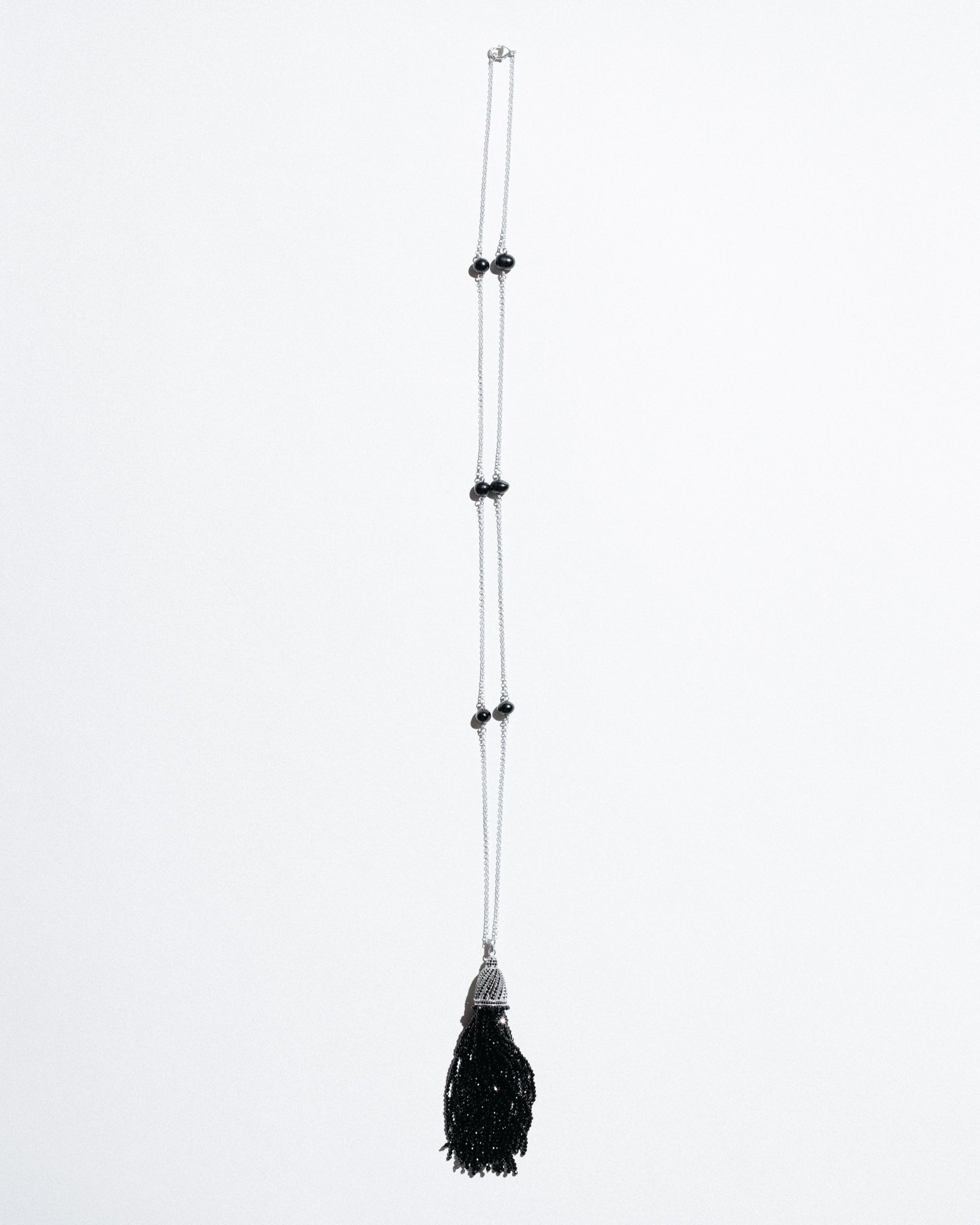 This luxurious tassel was worthy of being worn on a silver chain with pearls. It was a chic, long piece of jewelry that would elevate any look.