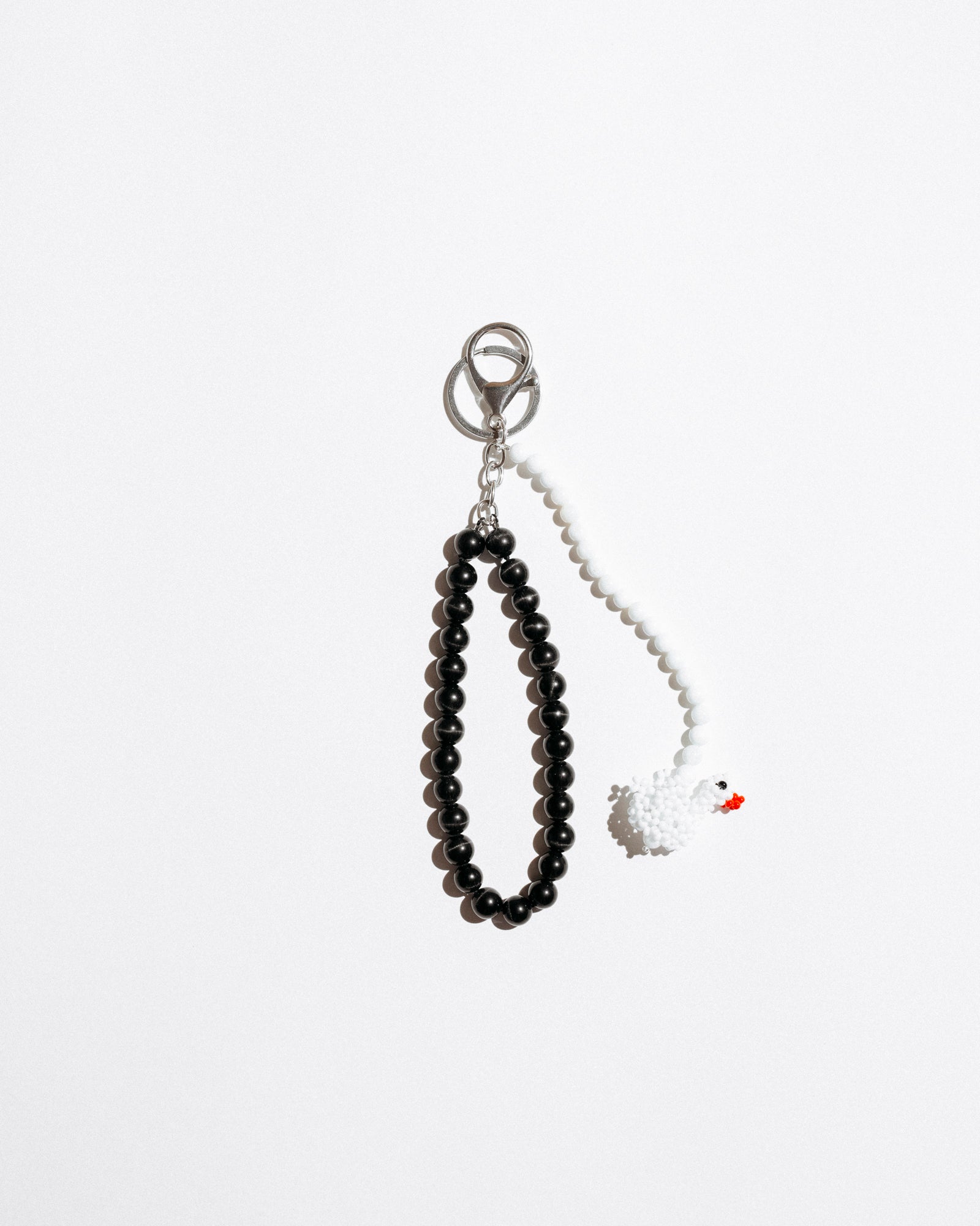 Freshwater pearl keychain with white duck charm. Duck is a symbol of a happy family. Therefore, it is an ideal keychain for your house keys. Alternatively, wear it on your bag or any accessory.